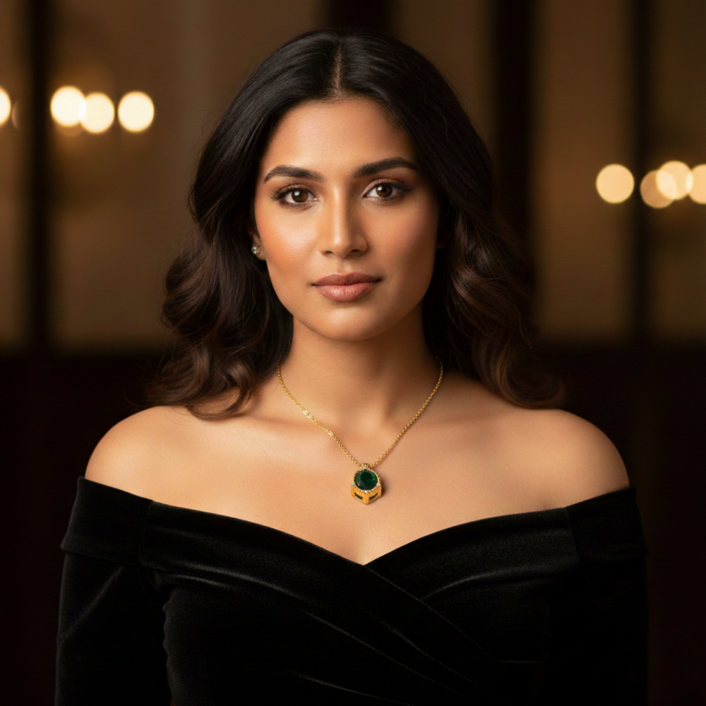 The Emerald Queen Pendant is a masterclass in regal sophistication. Designed for those who appreciate the allure of jewel tones and architectural precision, this necklace features a deep, forest-green crystal held within a sculptural hexagonal setting. With its vintage-inspired rope textures and heavy gold finish, it’s a modern heirloom that brings a sense of power and poise to your jewelry collection.