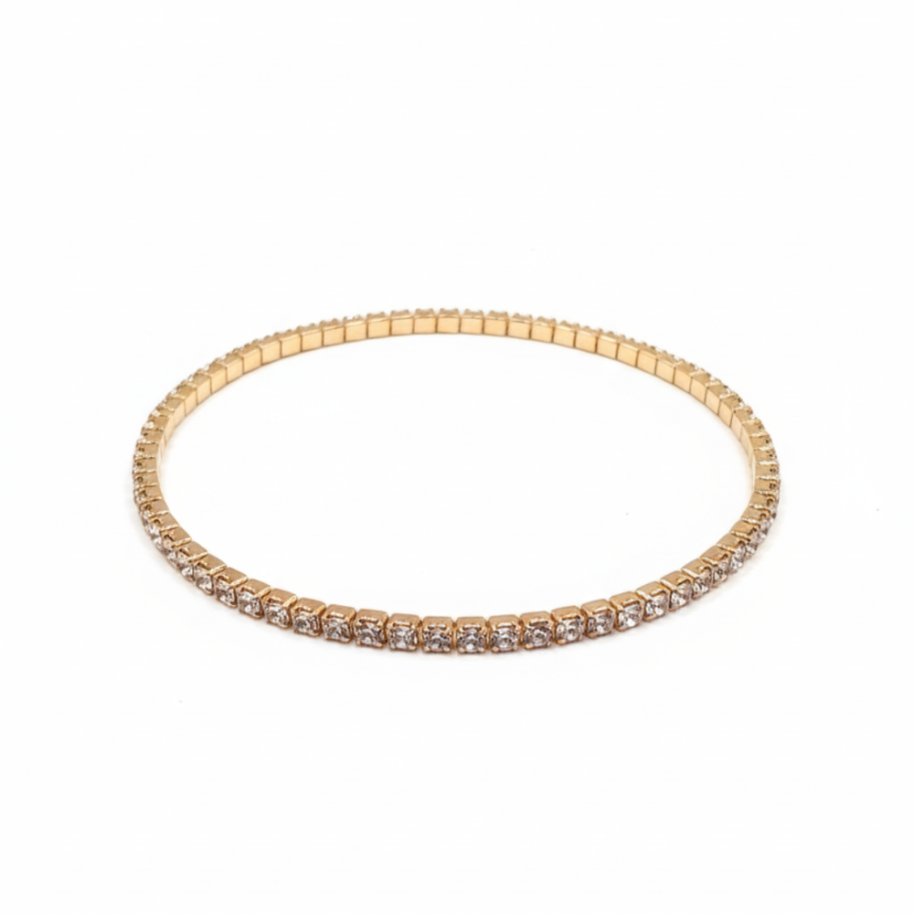 This Classic Gold-Tone Cubic Zirconia Tennis Bracelet is a radiant staple piece designed to bring a touch of luxury to your jewelry collection. The bracelet features a seamless, continuous row of brilliant round-cut clear crystals, each carefully nestled within a polished, square-link gold-tone setting. Its warm, high-shine finish serves as the perfect backdrop for the shimmering stones, creating an elegant "everlasting" sparkle that transitions effortlessly from day to night. Built with a convenient and flexible clasp-free design, this piece slides comfortably onto the wrist, making it an ideal choice for effortless solo wear or for adding a high-end glint to your favorite bracelet stack.