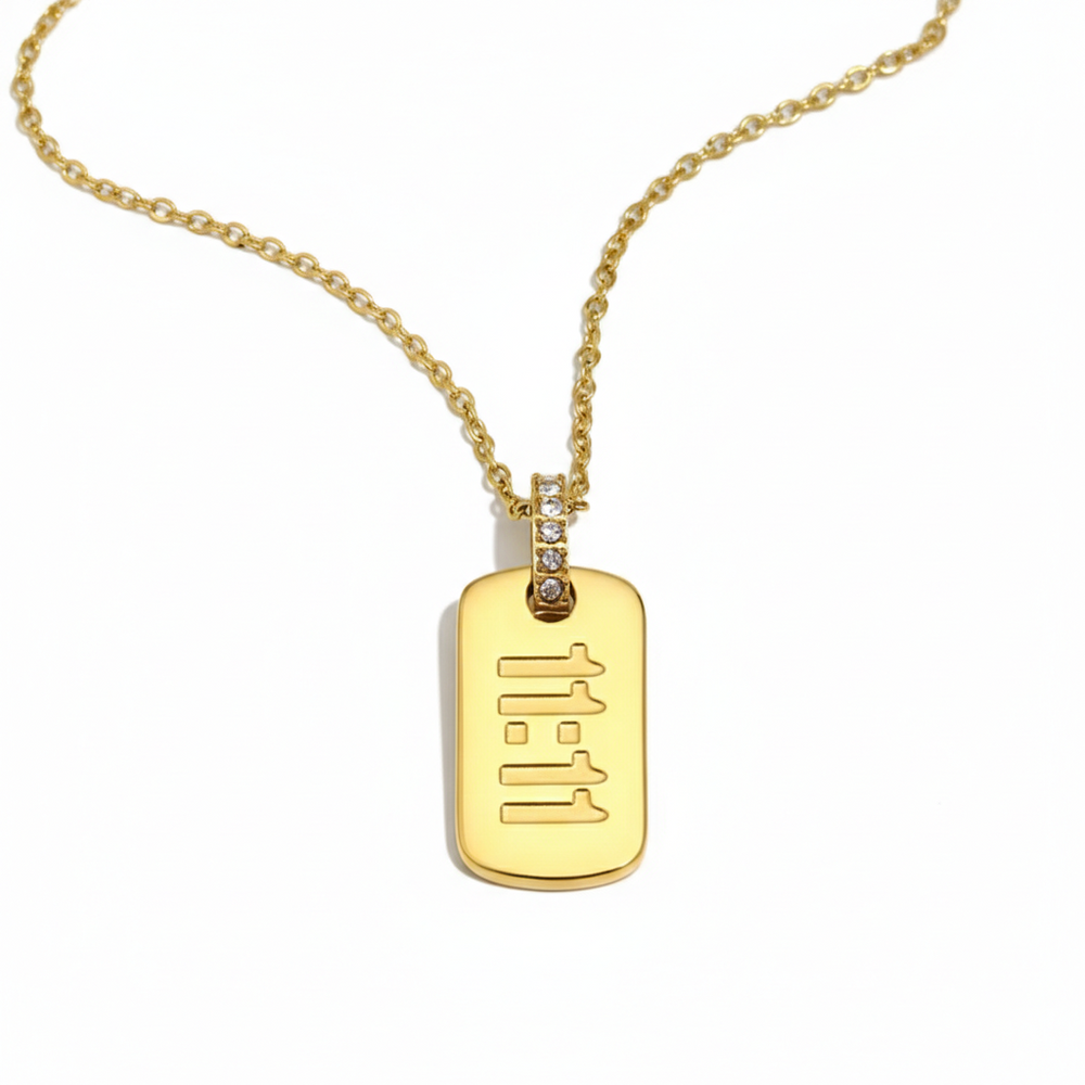 Capture the magic of divine timing with the 11:11 Alignment Pendant. This modern, symbolic piece is designed for those who believe in synchronicity and the power of manifestation. Combining a sleek, "dog-tag" inspired silhouette with high-end jewelry details, this necklace is both a spiritual talisman and a bold fashion statement. Whether you're making a wish or acknowledging your path, this pendant keeps you aligned in style.