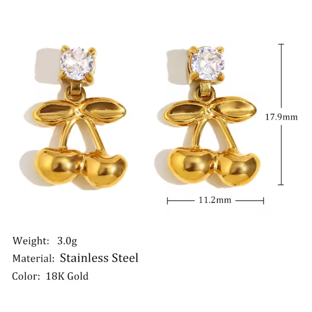 Add a touch of playful elegance to your jewelry collection with our Golden Orchard Cherry Earrings. These exquisite drops reimagine a classic, whimsical motif with a sophisticated, high-fashion twist. Designed to catch the light and start conversations, they feature a lustrous gold-tone finish paired with a brilliant crystal accent, making them the perfect accessory for both sun-drenched brunches and elegant evenings.